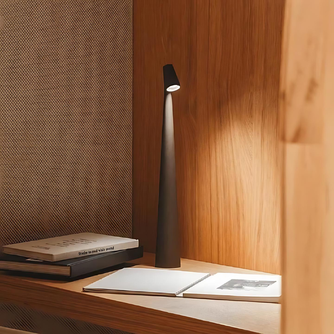 It is battery-powered and comes with a charger for wireless use. You will need to charge it before enjoying cordless illumination.